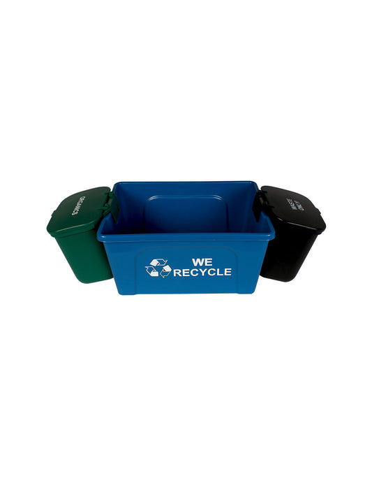 OFFICE COMBO - Triple - Kit - Mobius Loop-We Recycle-Organics-Waste - Solid Lift - Blue-Green-Black