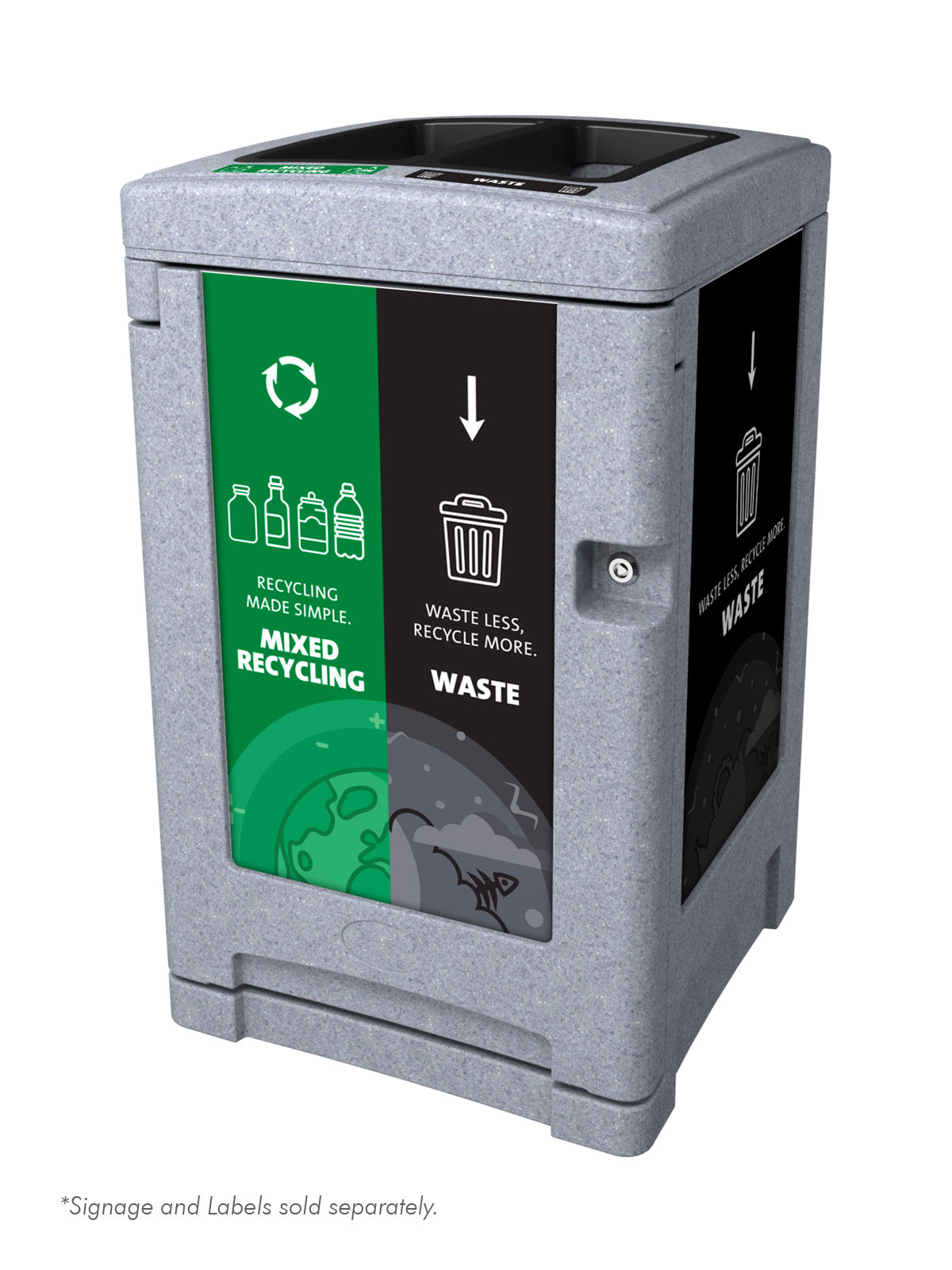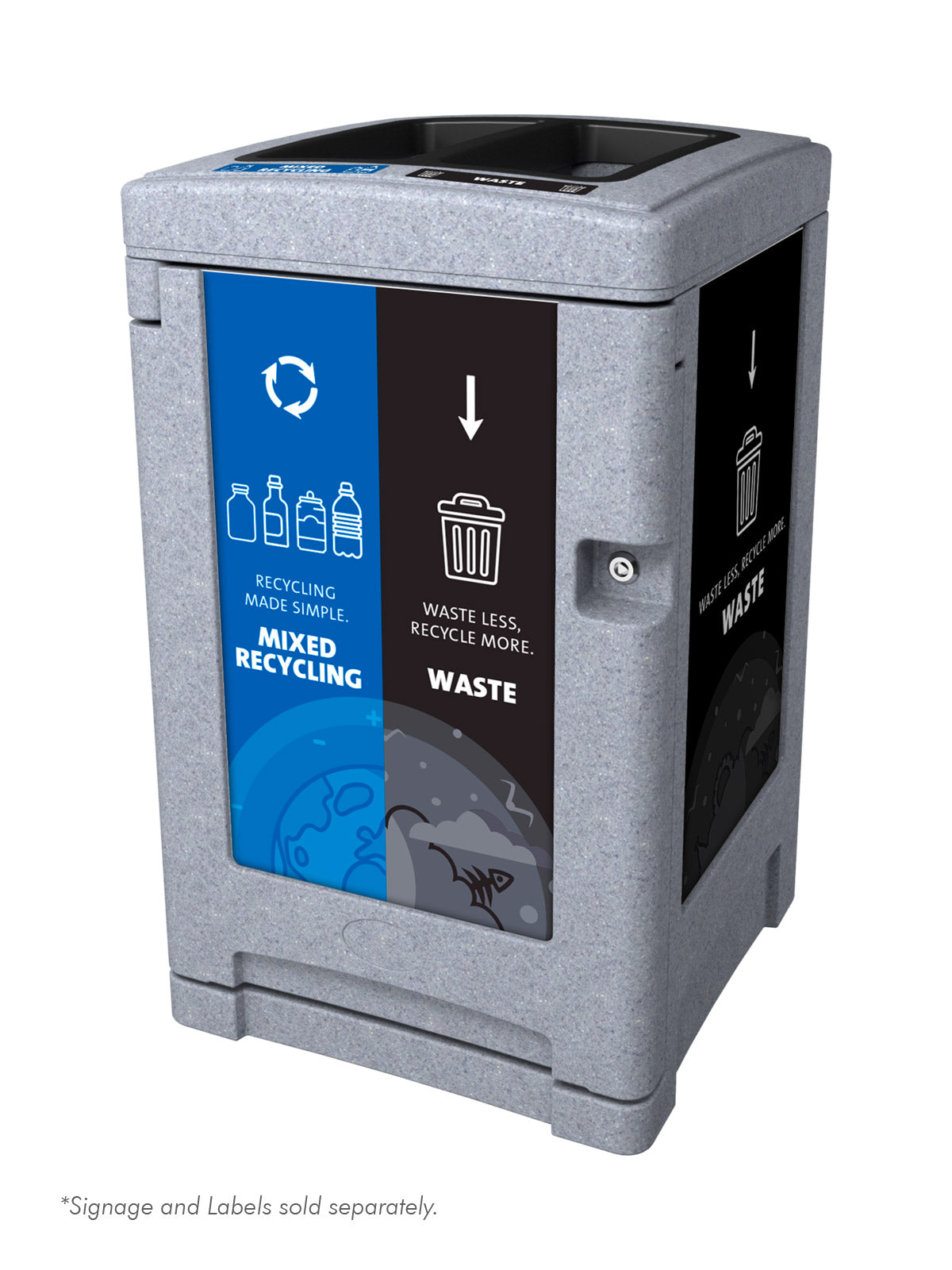 The Expression is the only molded plastic container that effectively prioritizes signage! All four sides have space for customized signage, allowing you to differentiate streams or advertise your business. Made from double-wall plastic, this sturdy container is built to last. Its simple yet sophisticated appearance is unique and fits perfectly into any space while adapting to the needs of your program.