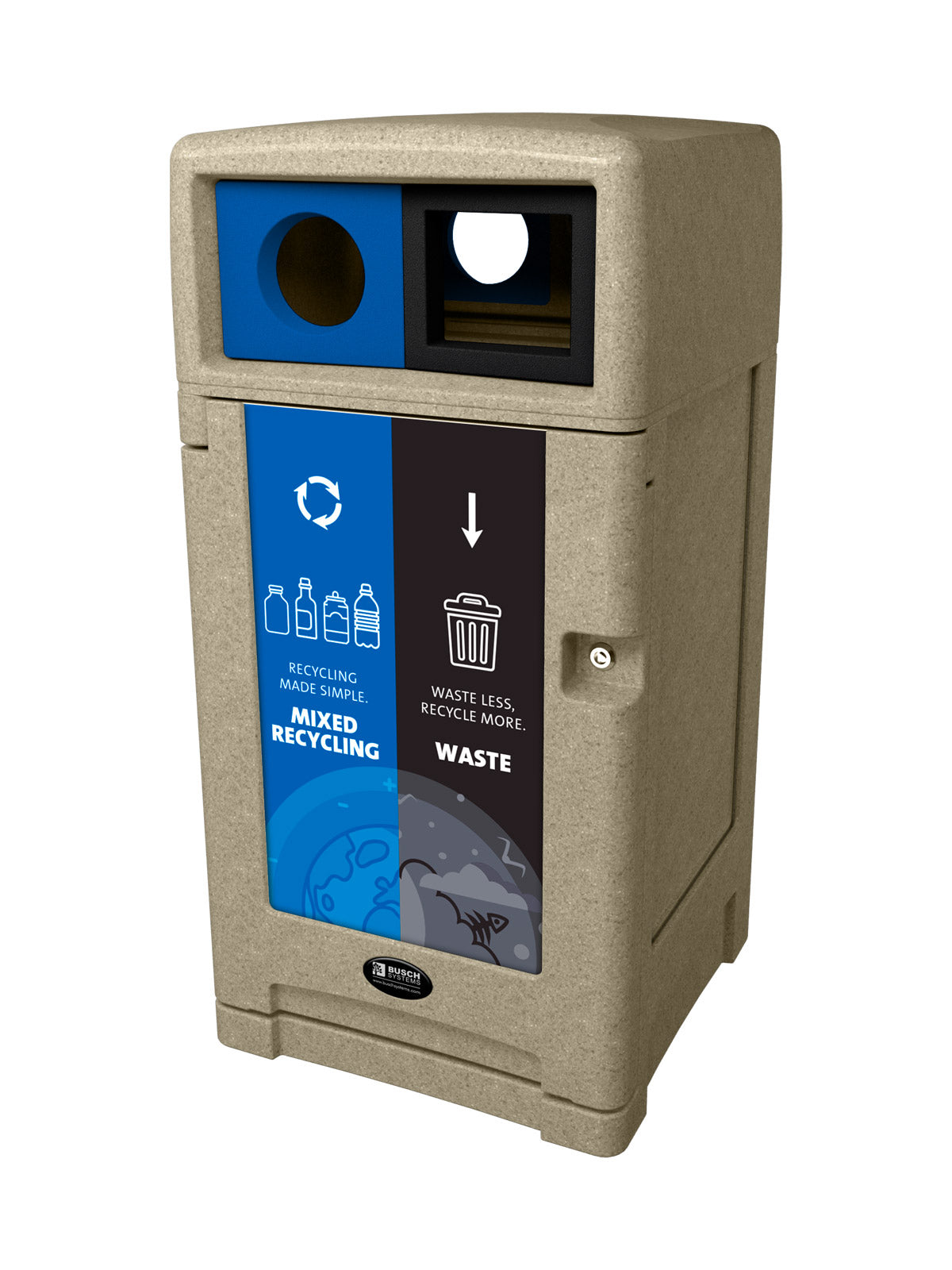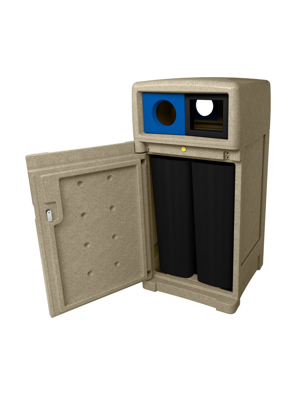 The Expression™ is the only molded plastic container that effectively prioritizes signage! All four sides have space for customized signage, allowing you to differentiate streams or advertise your business. Made from double-wall plastic with a canopy lid that protects the contents from precipitation, this sturdy container is built to outlast any type of weather. Its simple yet sophisticated appearance is unique and fits perfectly into any outdoor space while adapting to the needs of your program.