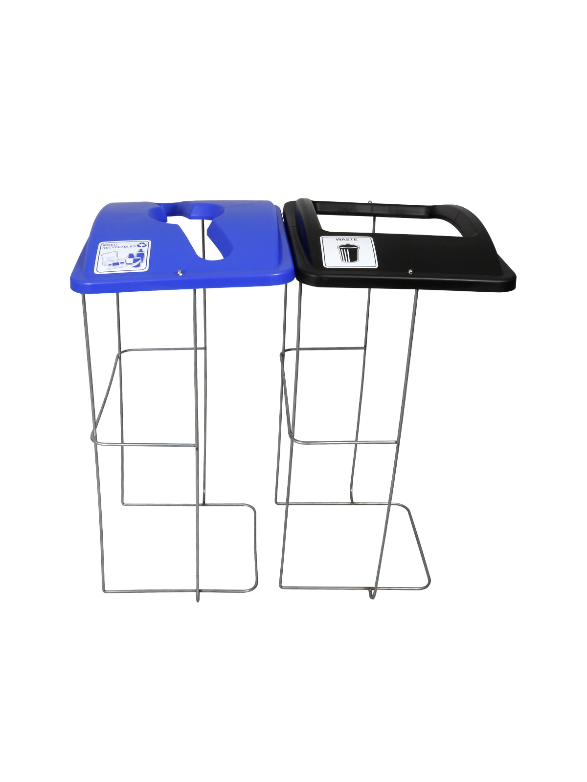 WIRE EVENT CONTAINER (2 Pack) - Double - Kit - Mixed Recyclables-Waste - Mixed-Full - Blue-Black